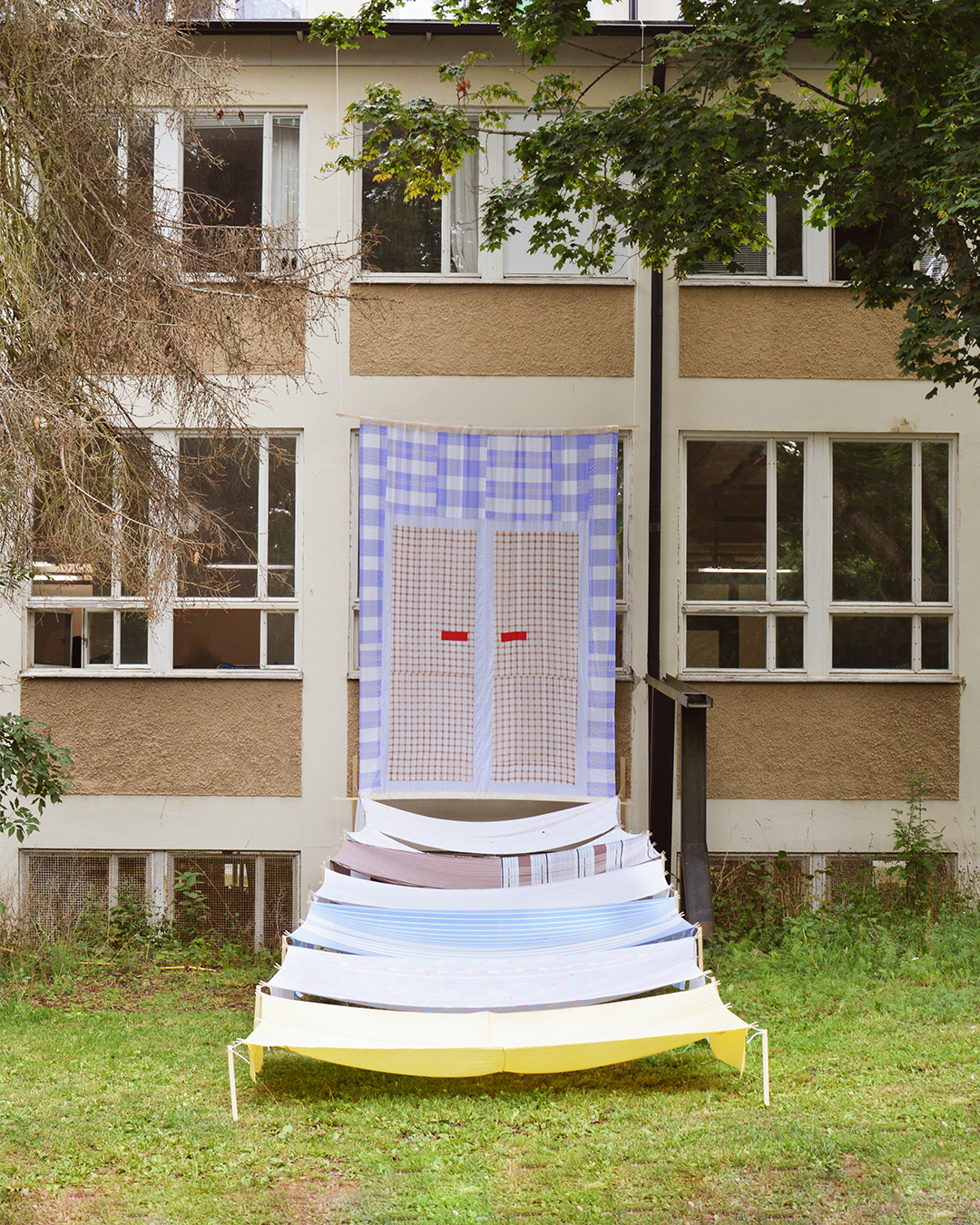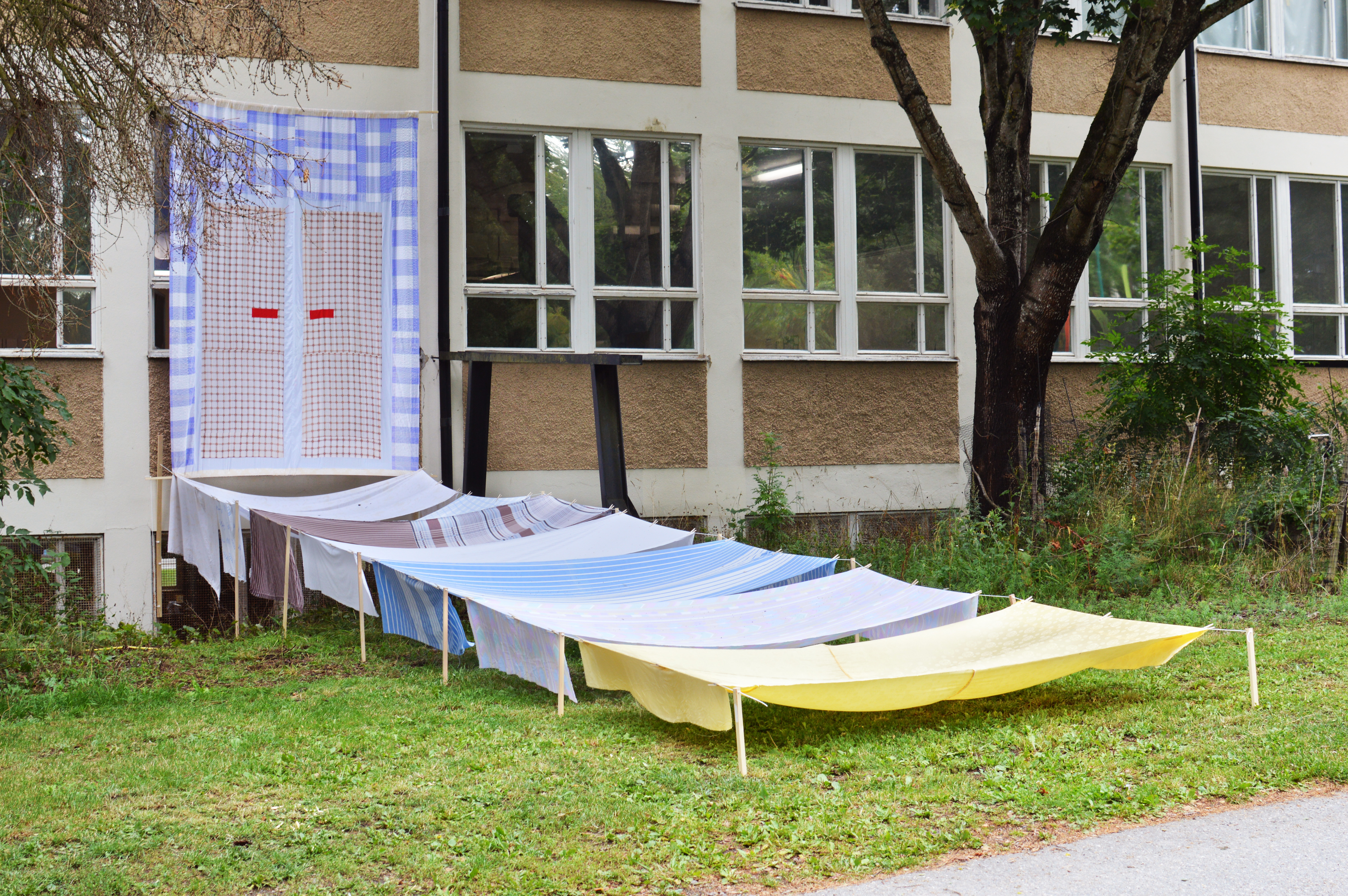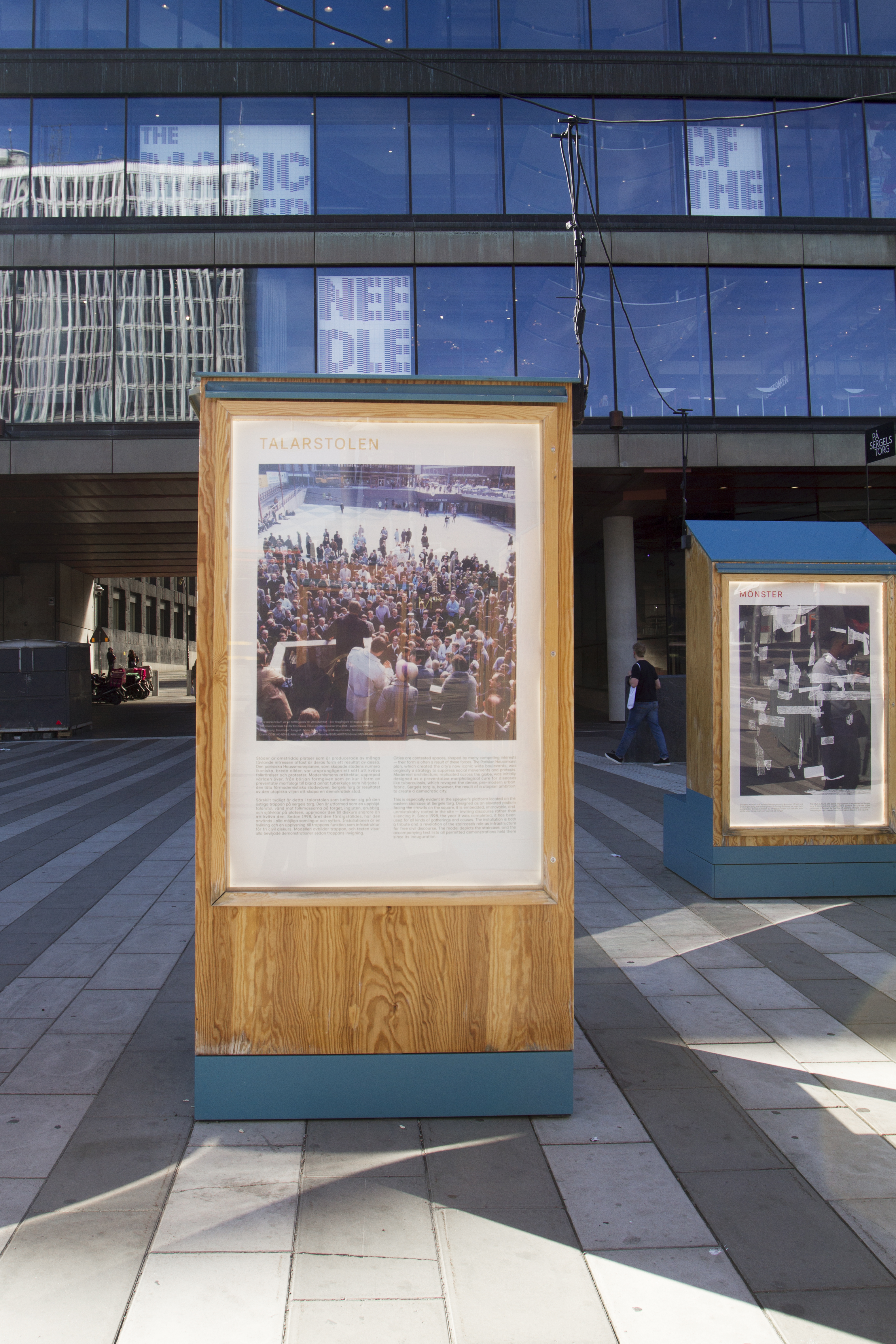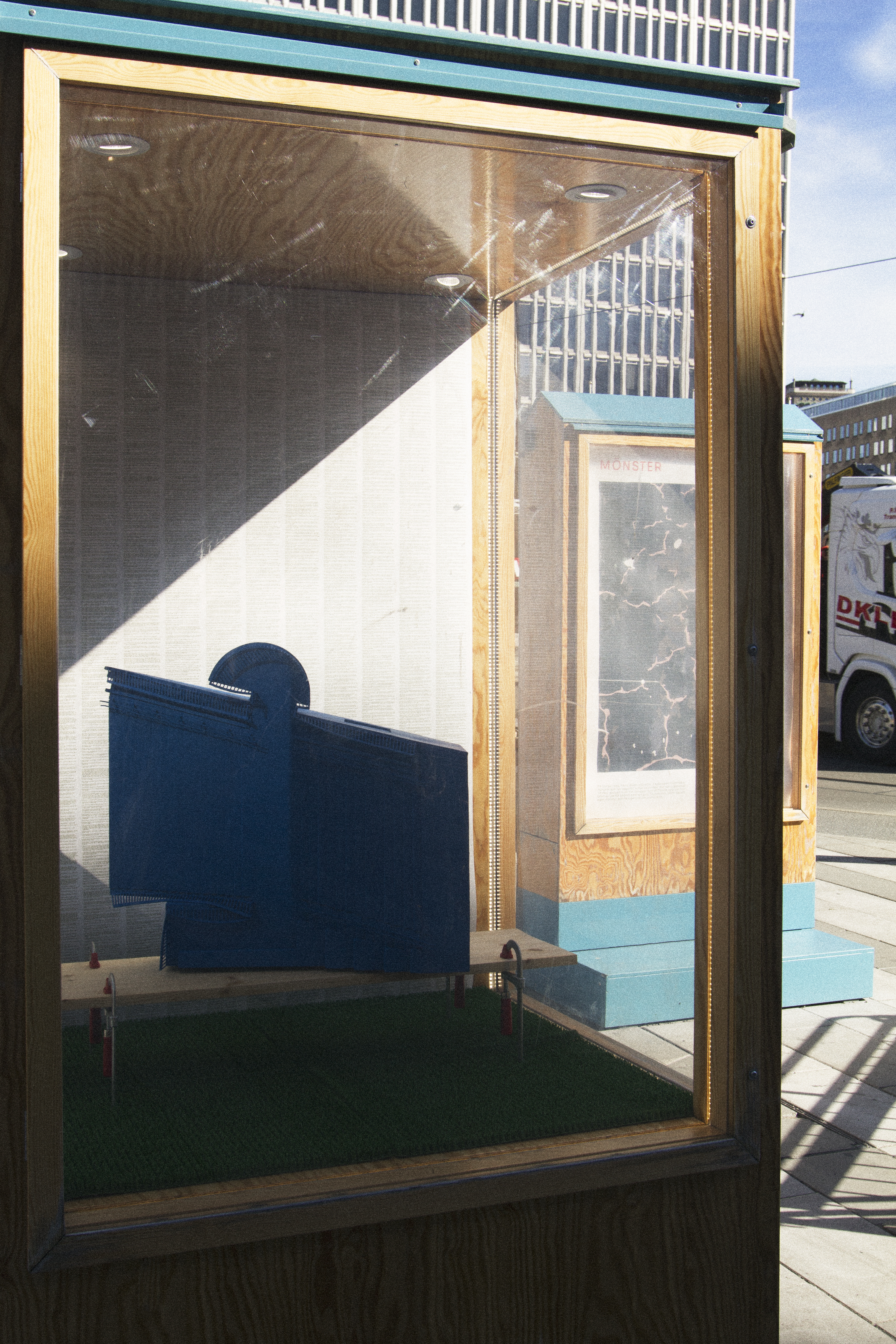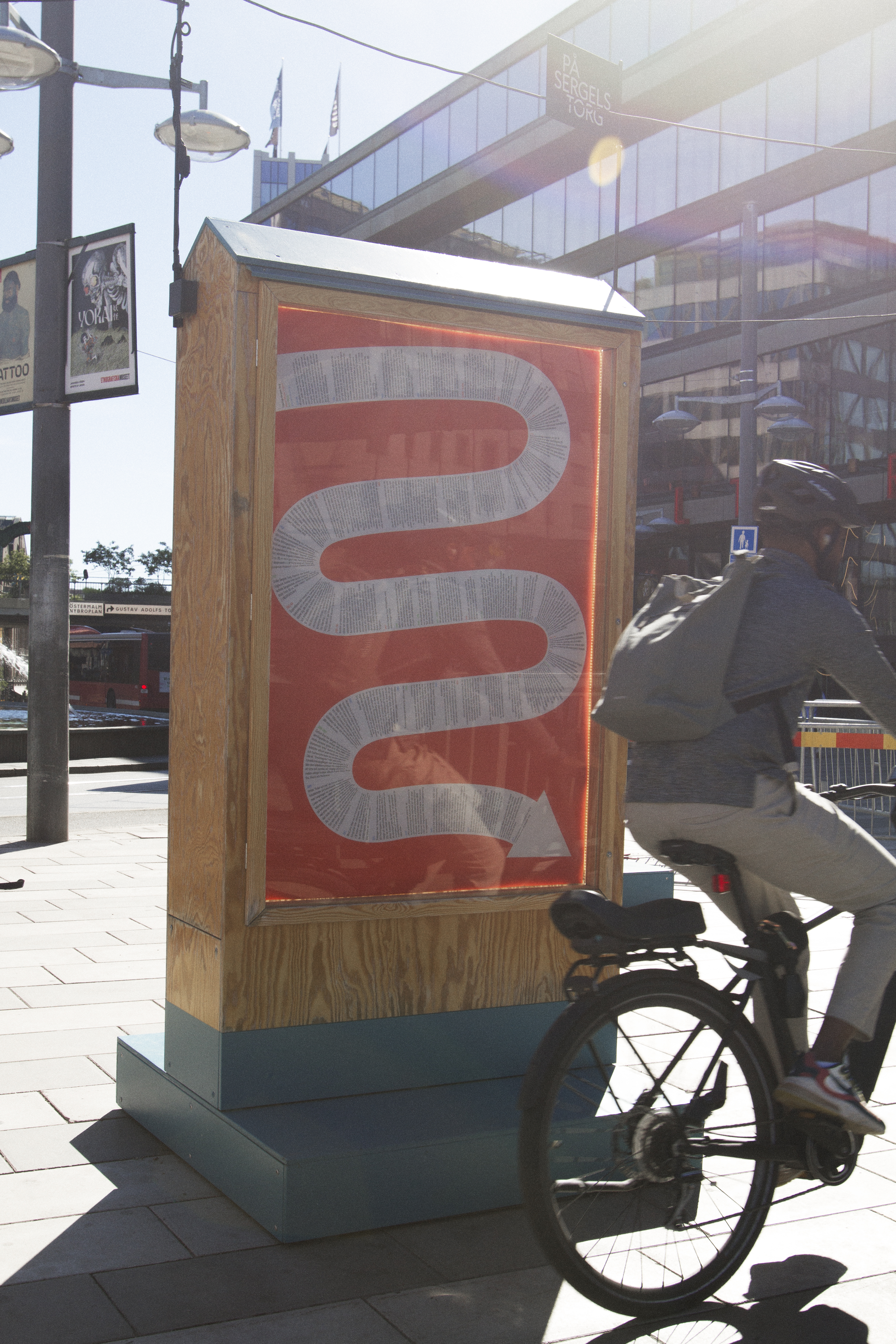 A public art installation used to investigate and activate part of valhallavägen. The chairs were designed to be as simple as possible. asking what a chair is at it's point maximum distillation: a series of surfaces organized in space to support the human body. the chairs were built during a collaborative workshop in early 2022 and stayed on site, moving around, finding new orientations, crossing the road, hosting impromptu parties, looking for spring sun-shine, and being public furniture for 6 months until finally being cleaned away late august 2022 by unknown persons. First image taken by Declan Quirke.